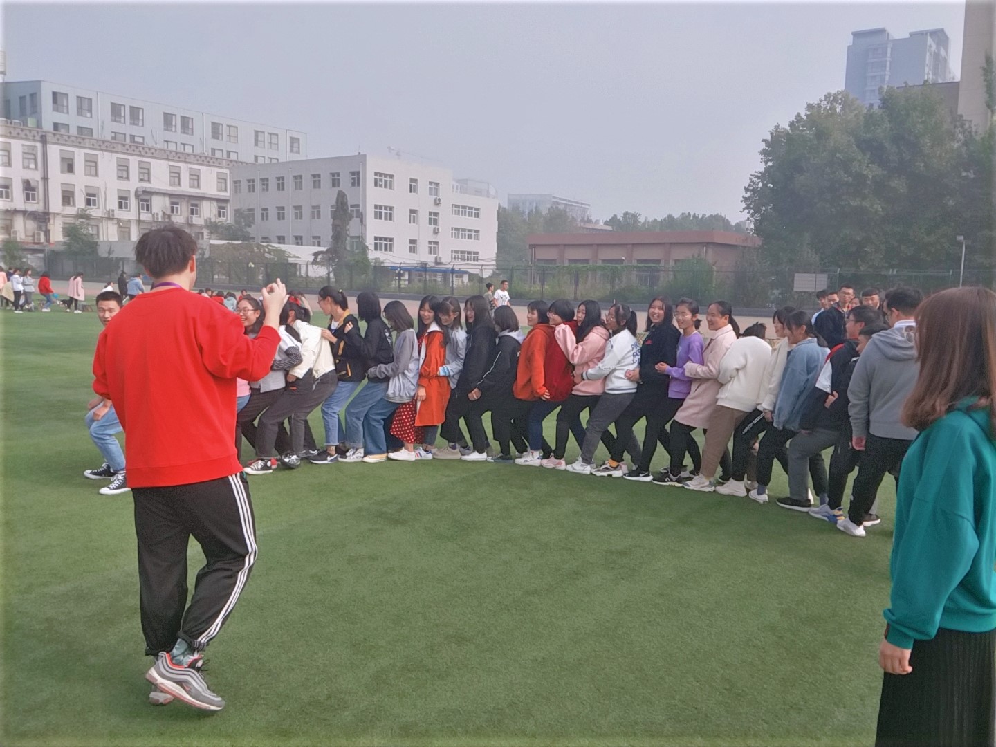 为帮助2019级新生顺利适应大学生活,营造学生之间相互了解、信任与接纳的良好氛围,增强班级的凝聚力,10月19日上午,台湾av 学生科在建华校区南院操场举办了以“适应生活、快乐起航”为主题的新生适应性团体辅导活动。学生科孙鲁艳老师及2019级部分辅导员、2019级全体学生参加了此次活动。